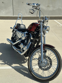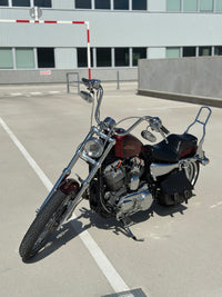 Look chopper des années 70, réservoir peanut, flancs blancs et guidon mini-ape. Style unique, moteur coupleux et sensations garanties. Une Harley rare qui attire tous les regards avec sa peinture metal flake.